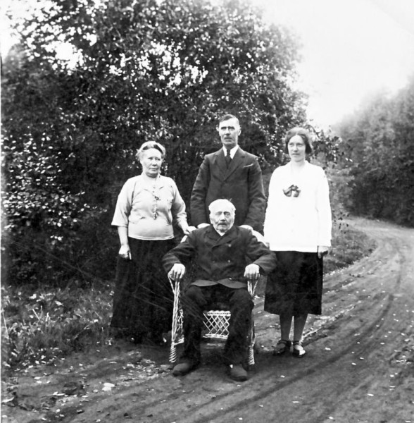 Bild 2854 Kinnekulle Fullösa socken Gössäter Nysäter omkring 1925 Fr.v Anna, Karl och Ingeborg Larsson. Mannen i stolen förmodligen Karls far.