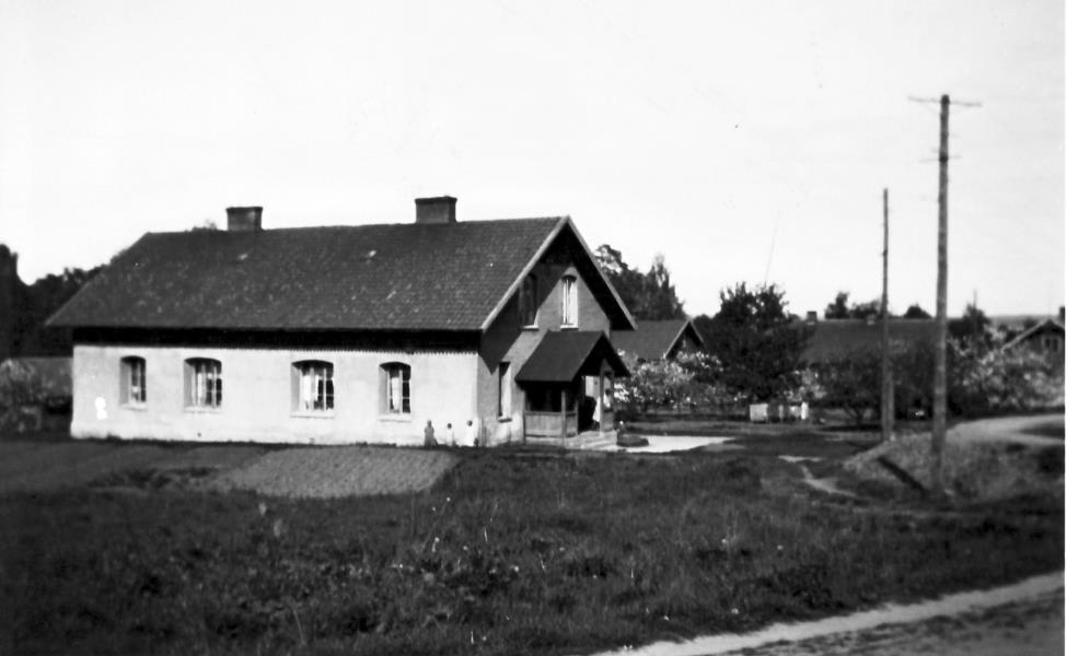 Bild 2858 Kinnekulle Fullösa socken Gössäter Nysäter 1930-talet Stora bolagshuset med 6 st. enrumslägenheter. I bakgrunden syns de tre mindre husen av samma typ med 3 lägenheter i varje.