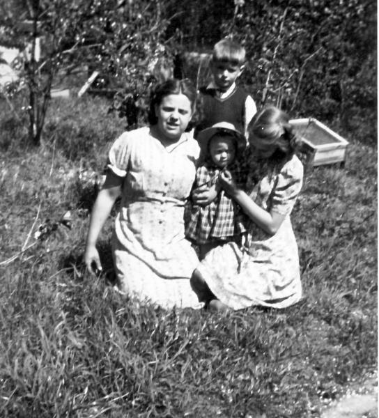 Bild 2862 Kinnekulle Fullösa socken Gössäter Nysäter 1941 Elsa Andersson, Evy med sin mamma Ebba Andersson född Svedberg- Stående bakom Ragnvald Johansson