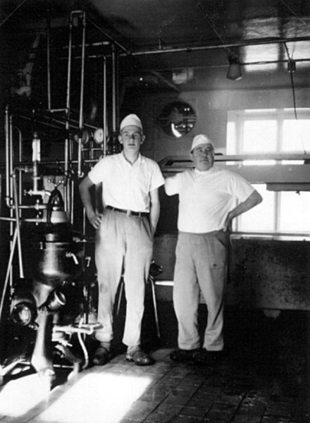 Bild 1292 Mejeriet på Råbäck Gunnar Skog, Ingvar Persson, Sven Syren.