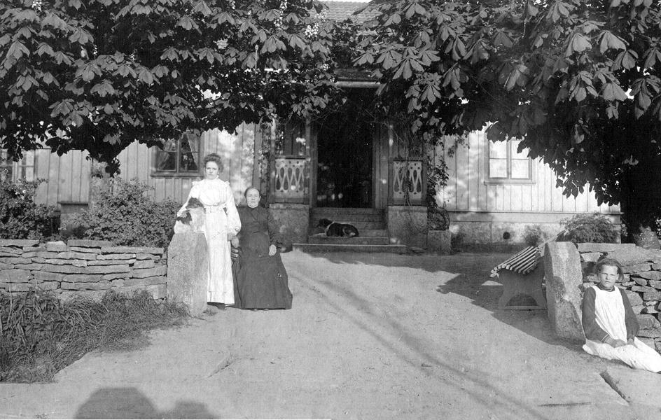 Bild 5302 Kinnekulle Västerplana socken Storebacken På trappan till vänster handlare Sofie Lundberg (Soffie) med dottern Gertrud Lundberg (Gerda)