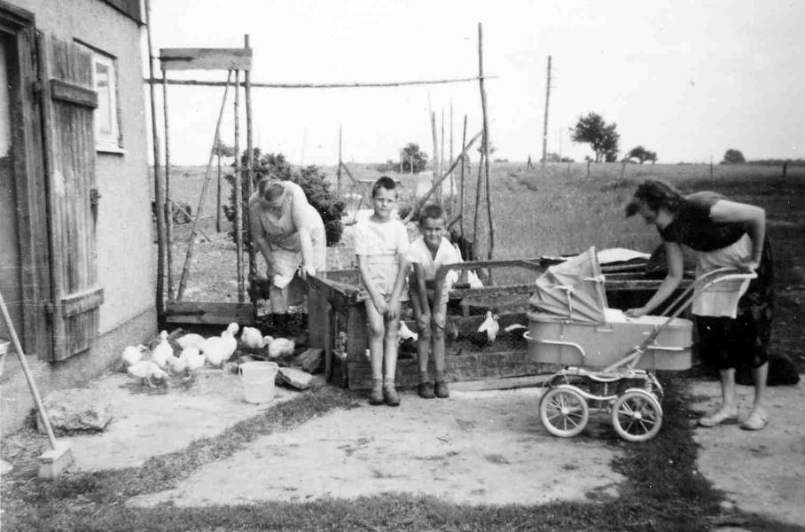 Märta Bengtsson, Jonny, Arne och Svea Bengtsson samt Stefan i barnvagnen
