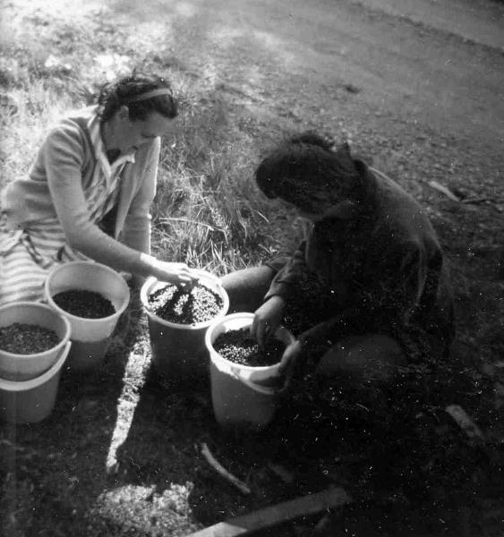 Lingonplockning 35 liter dagenns skörd, Gudrun Bengtsson och Barbro 1960